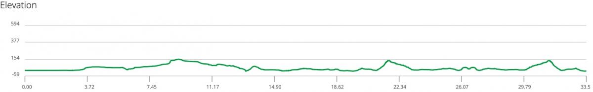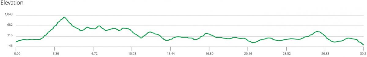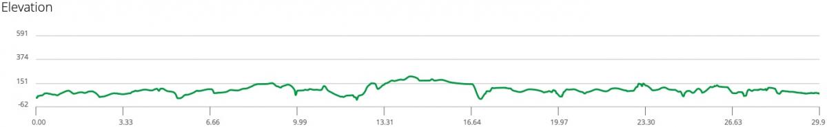 On California State Route 1; 0 miles, staying at the hotel; or 30 miles (with +1491 ft of ascent and -1449 ft of total descent), riding directly from Bean Hollow State Beach to Lagoon Park in Santa Cruz. [The route is primarily on paved roads.]